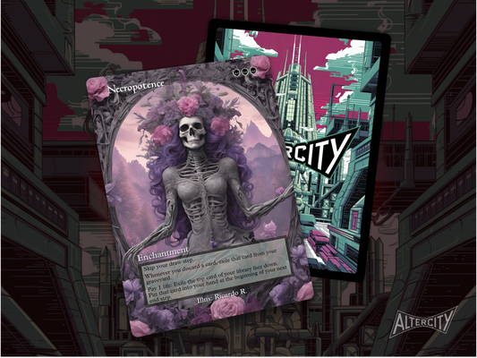 Bend the rules of mortality with Necropotence, a custom Magic: The Gathering proxy that turns life into a resource and cards into power. This hauntingly detailed...