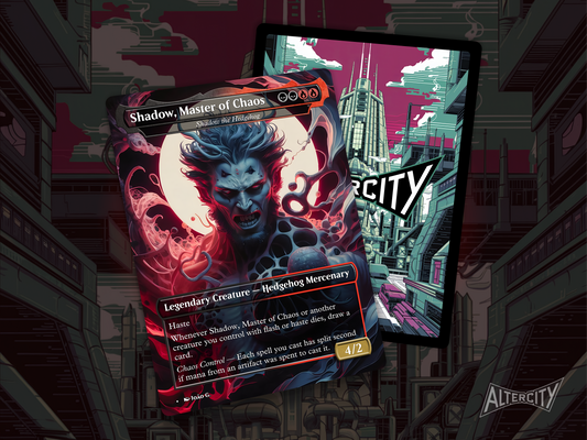Step into a darker realm of fantasy with Shadow the Hedgehog, a custom Magic: The Gathering proxy card from the reimagined Sonic Secret Lair. Featuring fully...