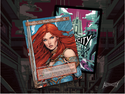 Turn every swing into a war cry with Najeela, the Blade-Blossom, a custom Magic: The Gathering proxy tailored for aggressive, token-swarming domination. This vibrant Najeela, the...