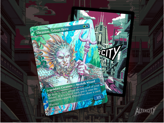 Tap into endless potential with Thrasios, Triton Hero, a custom Magic: The Gathering proxy made for combo players, value engines, and EDH strategists alike. This expertly...