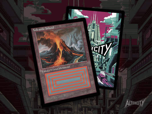 Volcanic Island (v3) - Dual Land Old School Retro Frame Alter - Mtg Custom Cards, Commander, Edh and cEDH High Quality Altered Proxies