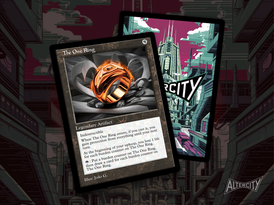 Wield unstoppable power with this custom The One Ring Magic: The Gathering proxy card, showcasing iconic, detailed altered art inspired by Tolkien’s legendary artifact. Printed at...