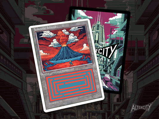 Volcanic Island (v1) - Dual Land Old School Retro Frame Alter - Mtg Custom Cards, Commander, Edh and cEDH High Quality Altered Proxies