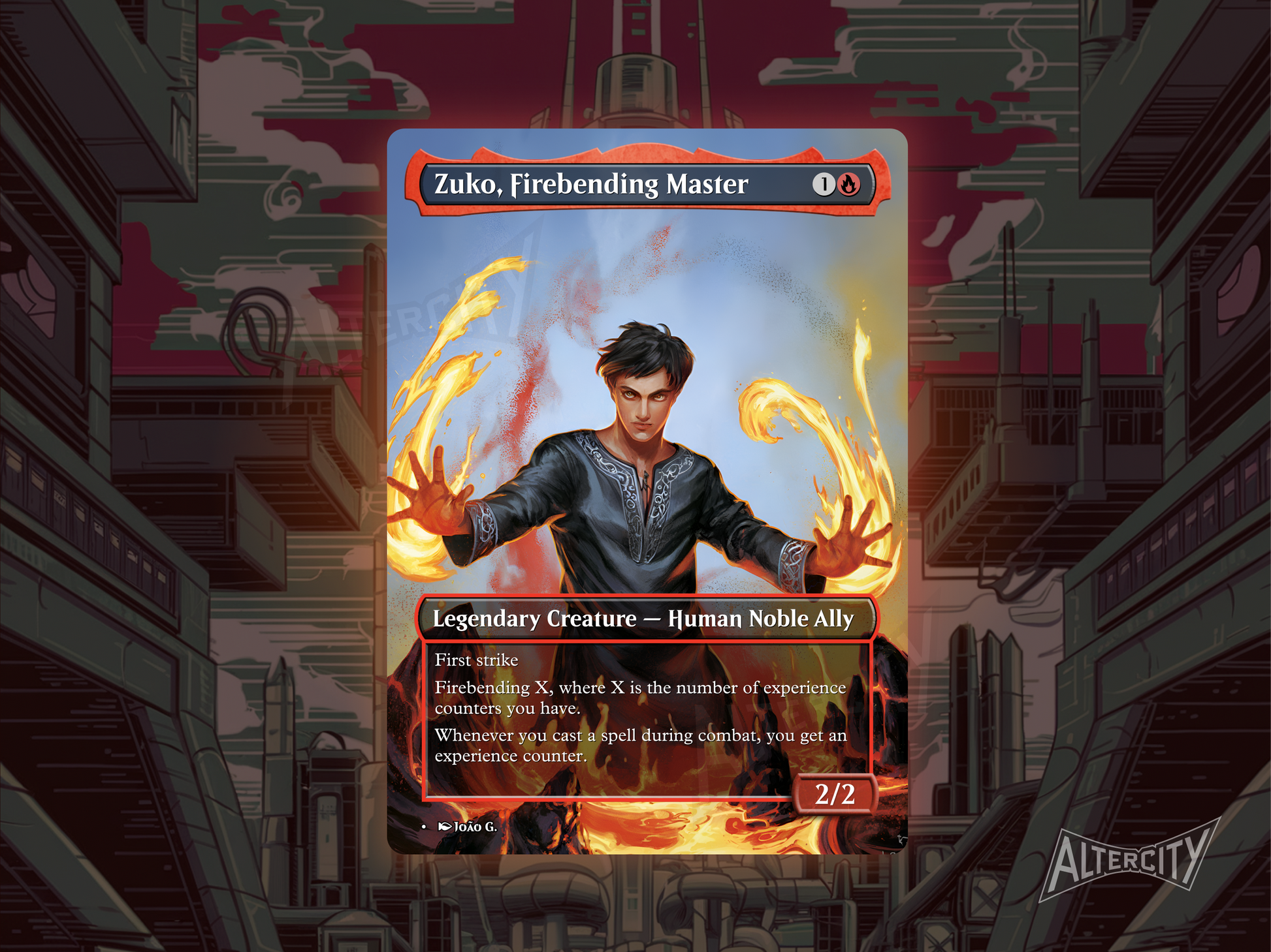 Zuko, Firebending Master - Avatar the Last Airbender Full Art Borderless Alter Proxy - MTG Custom Cards, Commander, Edh and Cedh High Quality Alters